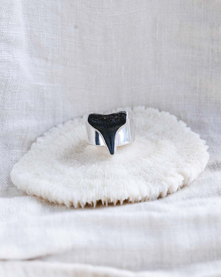 Our classic Found At Sea fossil ring with a wide tapered band. The intention of this ring is to help you stay connected to the ocean - A constant reminder of your greatest love.